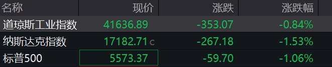 21:30 美股开盘丨三大指数大幅低开 特斯拉跌超5%
