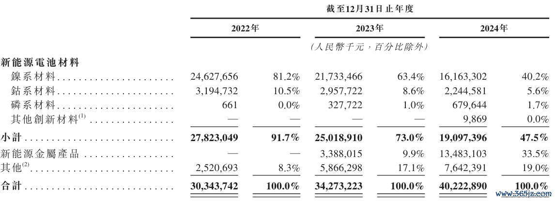 镍系材料是公司营收支柱,2024年贡献161.63亿元,占比40.2%。以镍为主的新能源金属产品爆发式增长,2024年收入134.83亿元,同比暴增近300%,成为增长新引擎,反映了全球新能源需求旺盛。