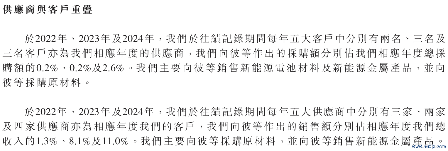 但客户集中风险如影随形。2022年至2024年,前五大客户收入占比从58%降至29.2%,但始终位列第一的客户A仍贡献35.48亿元,占比8.8%。招股书描述客户A为“电动汽车及清洁能源产业的跨国公司,成立于2003年,总部位于美国德州”,就差报出特斯拉(TSLA)的身份证号了;其他客户则不离厦钨新能(688778)、容百科技(688005)等下游正极厂商,其需求波动或放大中伟股份风险。
